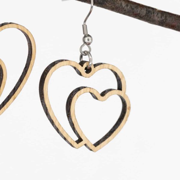 Les charmantes Boucles d’oreilles en bois de chêne, Cœur Fusion, alliant élégance et naturel, sont des joyaux précieux.
