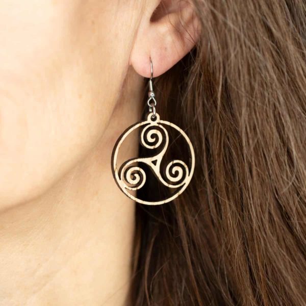 Boucles d’oreilles en bois de chêne, Triskele