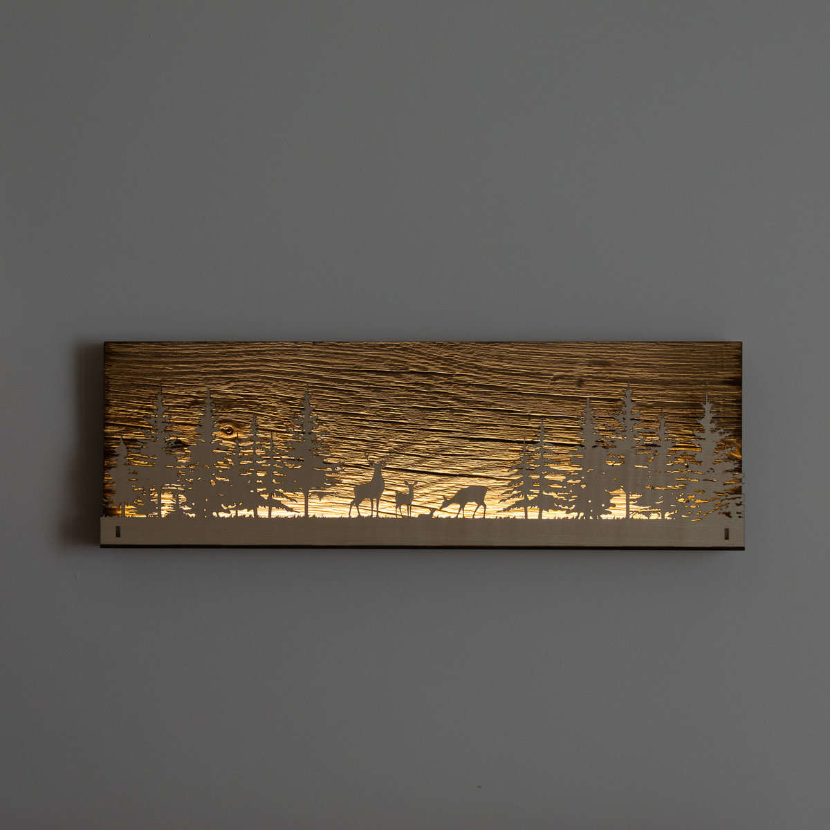 Tableau LED sans fil, 160×500 mm, Cerf et Forêt sur vieux bois